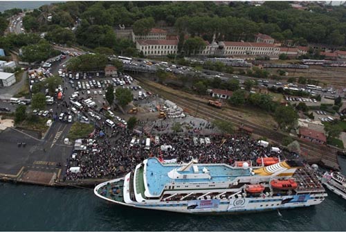 کشتی Mavi Marmara امروز در آبهای بینالمللی، هنگام انتقال کمکهای مردمی به غزه، توسط کماندوهای اسرائیلی مورد حمله قرار گرفته و 20 نفر از سرنشینان آن کشته شدند. تصاویر زیر مربوط به بارگیری و مراسم حرکت کشتی در استانبول است.
