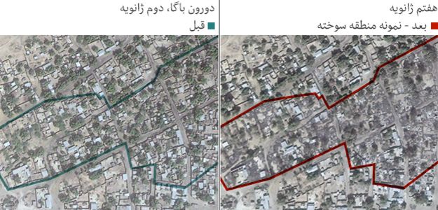 تصاویر ماهوارهای از باگا و دورونباگا که بعد از حمله گرفته شده وسعت ویرانی را نشان می دهد. عفو بینالملل تخمین زده ۳۷۰۰ بنا در این حمله تخریب یا نابود شده است.