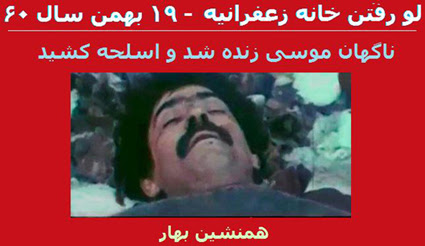 لو رفتن خانه زعفرانیه ۱۹ بهمن سال ۶۰ ناگهان موسی زنده شد و اسلحه کشید